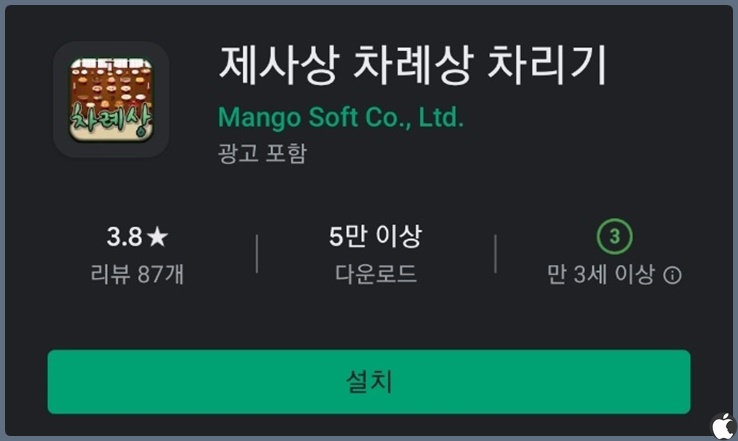 안드로이드 휴대폰 앱설치를 할 수 있는 플레이스토어로 들어가서 제사상이라고 검색해주세요. 그러면 이 차례상 앱을 설치할 수 있습니다.