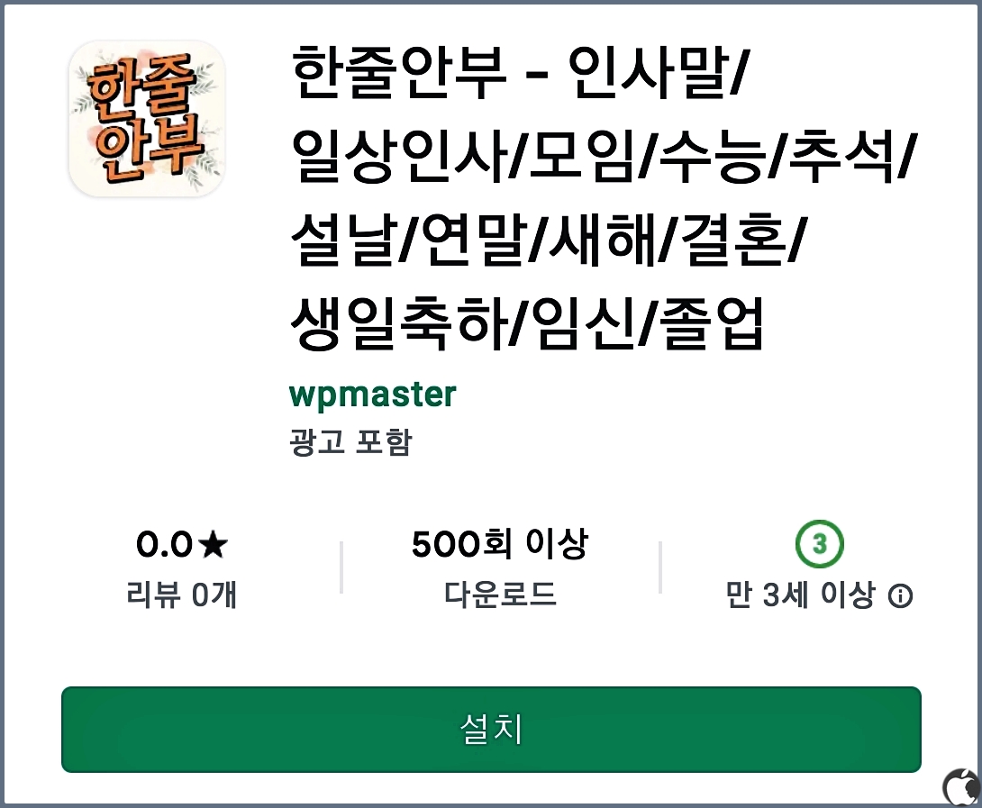 한줄안부라는 앱으로 다양한 인사말이 저장되어 있는 어플 입니다. 누구나 무료로 이용할 수 있으니 부담 없이 이용해보시면 될 것 같은데요.