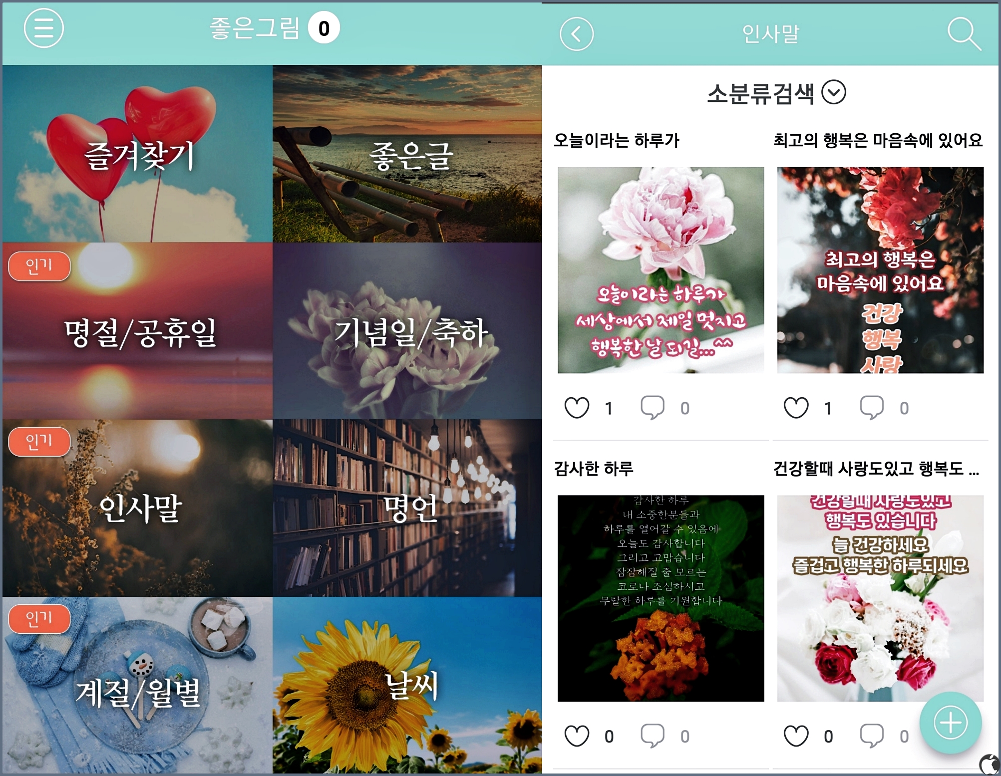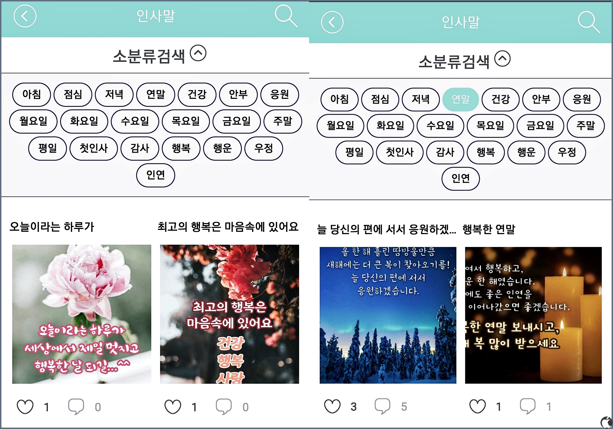 그 때 이런 좋은그림 같은 어플을 이용하면 좋을 것 같습니다. 앱을 설치하면 인사말 영역이랑 계절 등이 있으니 마음에 드는 영역으로 들어가서 이미지를 선택하시면 됩니다.